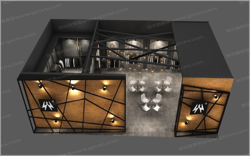创尔森展览承接雷邦在广州服装展搭建服务,整体色调以黑黄暖色调为主,突出雷邦服饰设计理念,整体的构建显示沉稳简洁大气。